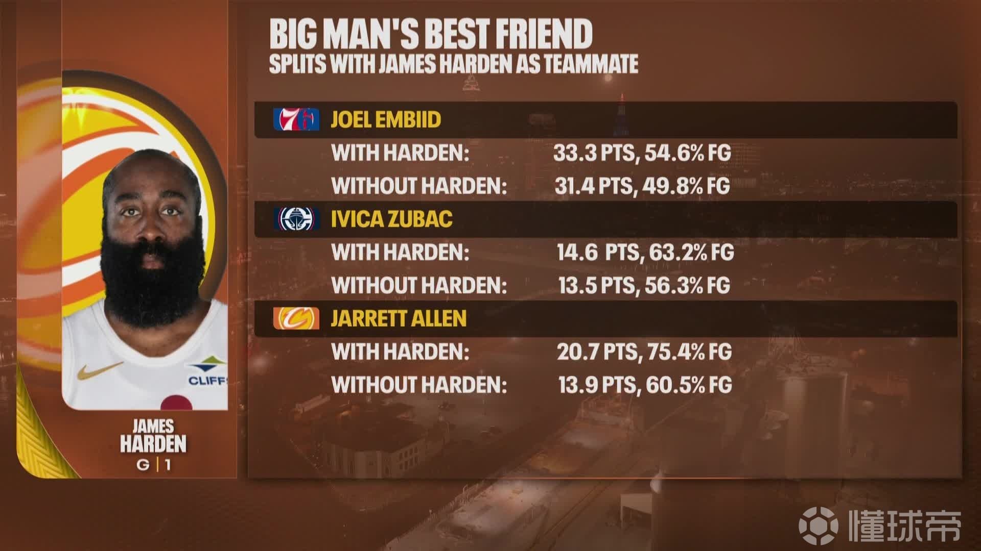 北京时间2月25日,美媒晒图分享恩比德、祖巴茨、阿伦与哈登做队友前后数据对比,得分、命中率均有显著提升。