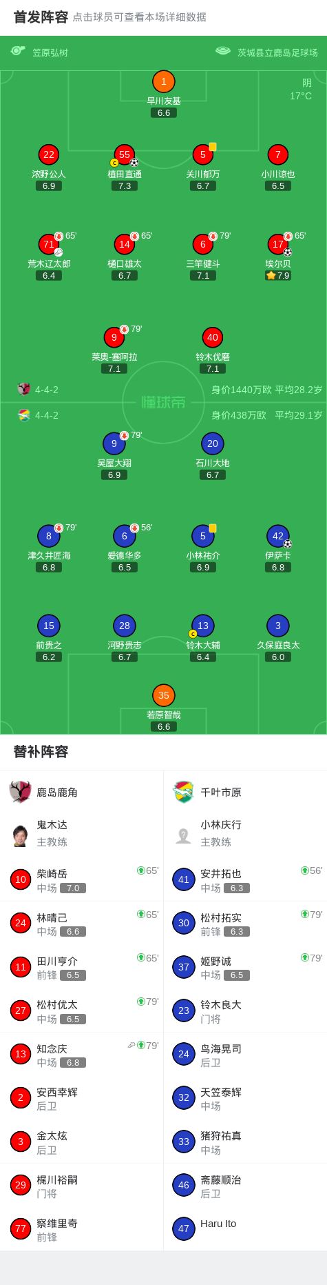 北京时间3月22日日本职业联赛J1 东区 第8轮,鹿岛鹿角主场对阵千叶市原。鹿岛鹿角埃尔贝破门,植田直通破门。千叶市原伊萨卡破门。最终比分鹿岛鹿角 2-1 千叶市原。